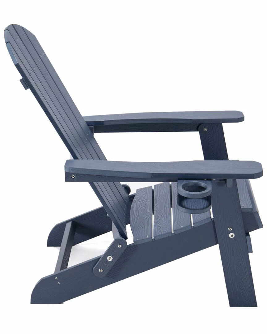 - Nothing beats unwinding in your backyard on a specially designed chair while taking in the fresh air. The foldable Adirondack chair is ideal for relaxing in the great outdoors while admiring nature’s splendor. It is made of weatherproof faux wood (plastic) and stainless steel hardware. Additionally, it adds a classic and transitional vibe to your backyard or patio space.