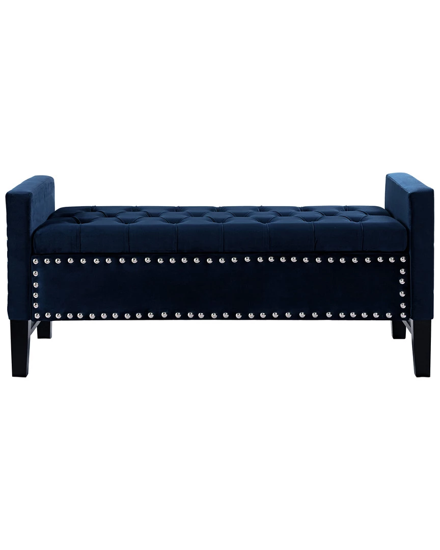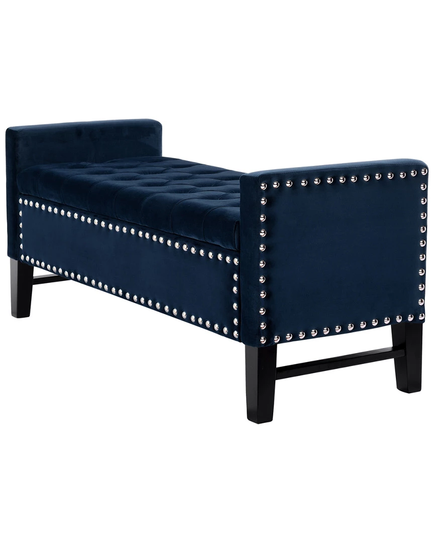 - Design details: Foam construction; velvet; silver decorative nail head trim; button tufted; high density foam seating; solid birch legs; hidden storage compartment; adjustable safety hinged storage lid