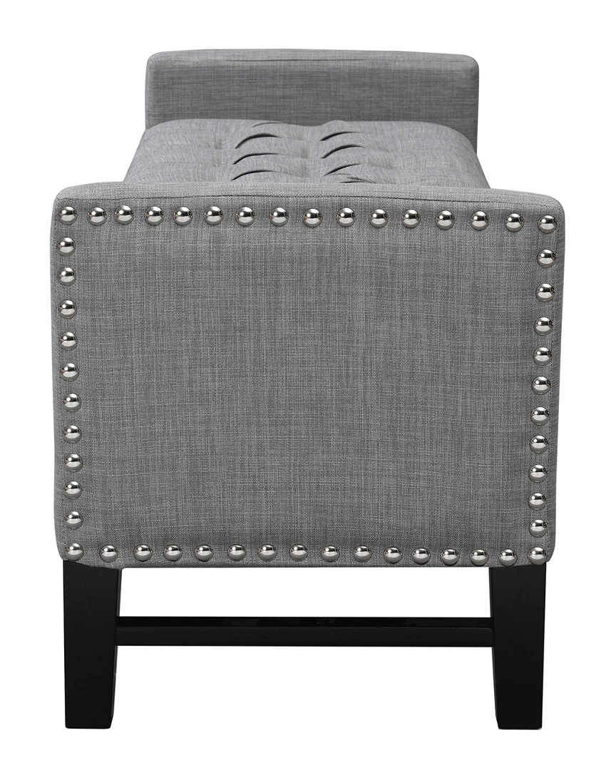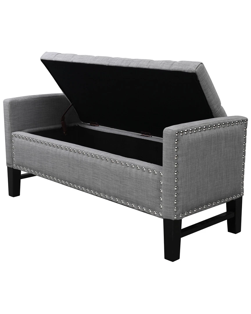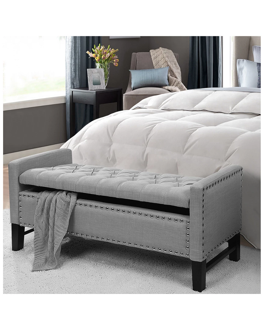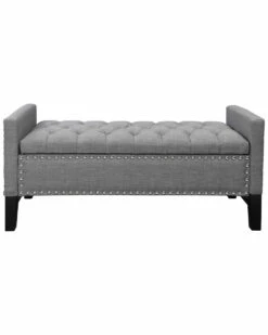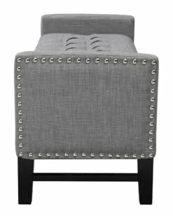 - Design details: Foam construction; linen fabric; silver decorative nail head trim; button tufted; high density foam seating; solid birch legs; hidden storage compartment; adjustable safety hinged storage lid