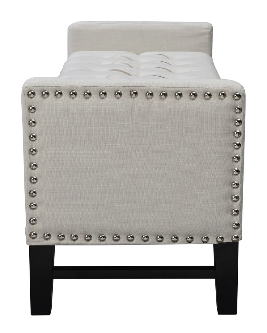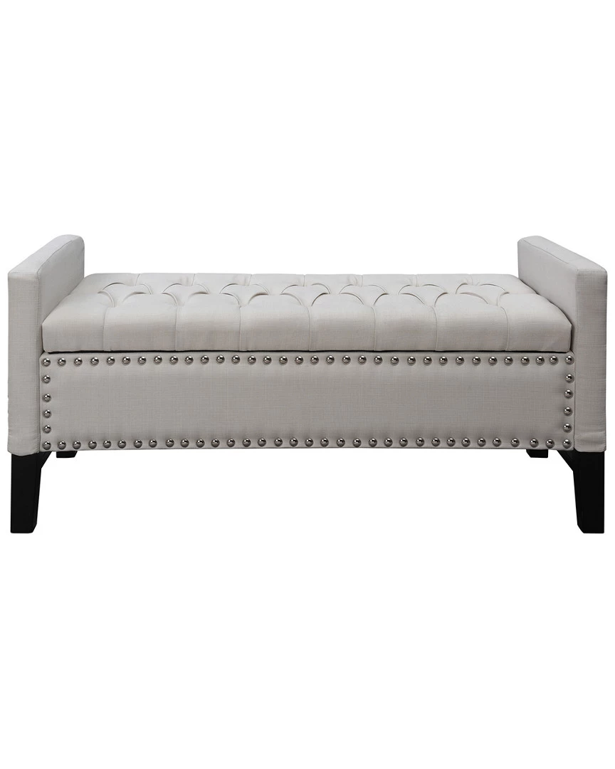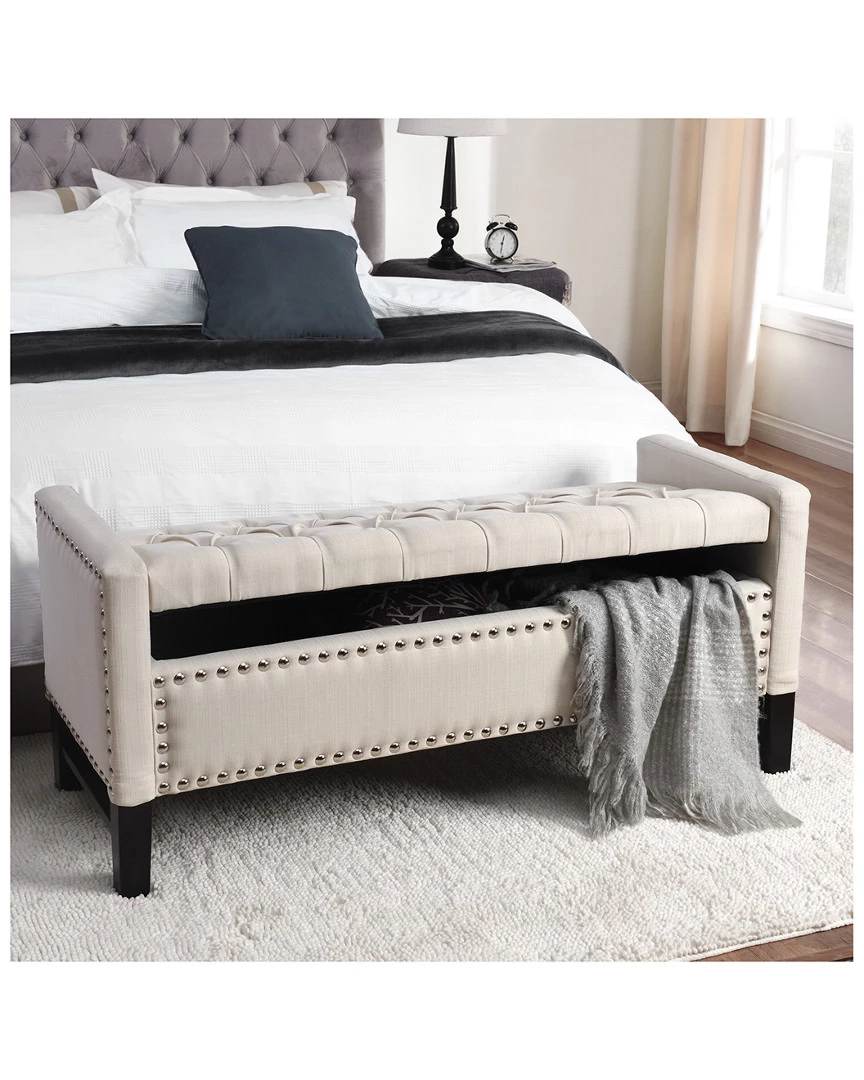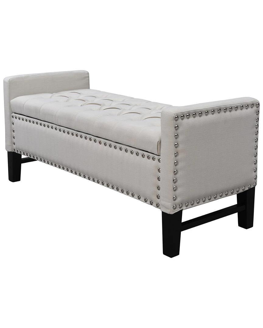 - Design details: Foam construction; linen fabric; silver decorative nail head trim; button tufted; high density foam seating; solid birch legs; hidden storage compartment; adjustable safety hinged storage lid