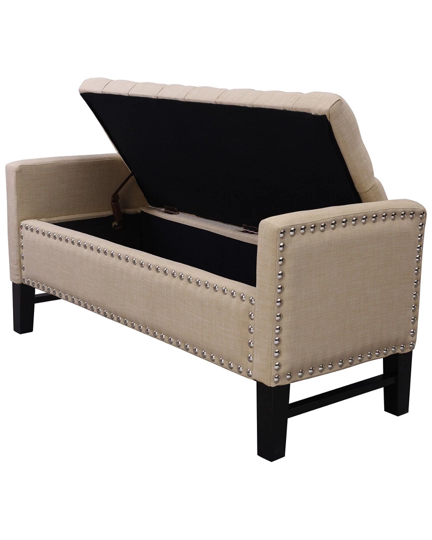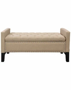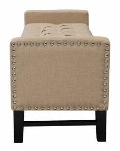 - Design details: Foam construction; linen fabric; silver decorative nail head trim; button tufted; high density foam seating; solid birch legs; hidden storage compartment; adjustable safety hinged storage lid
