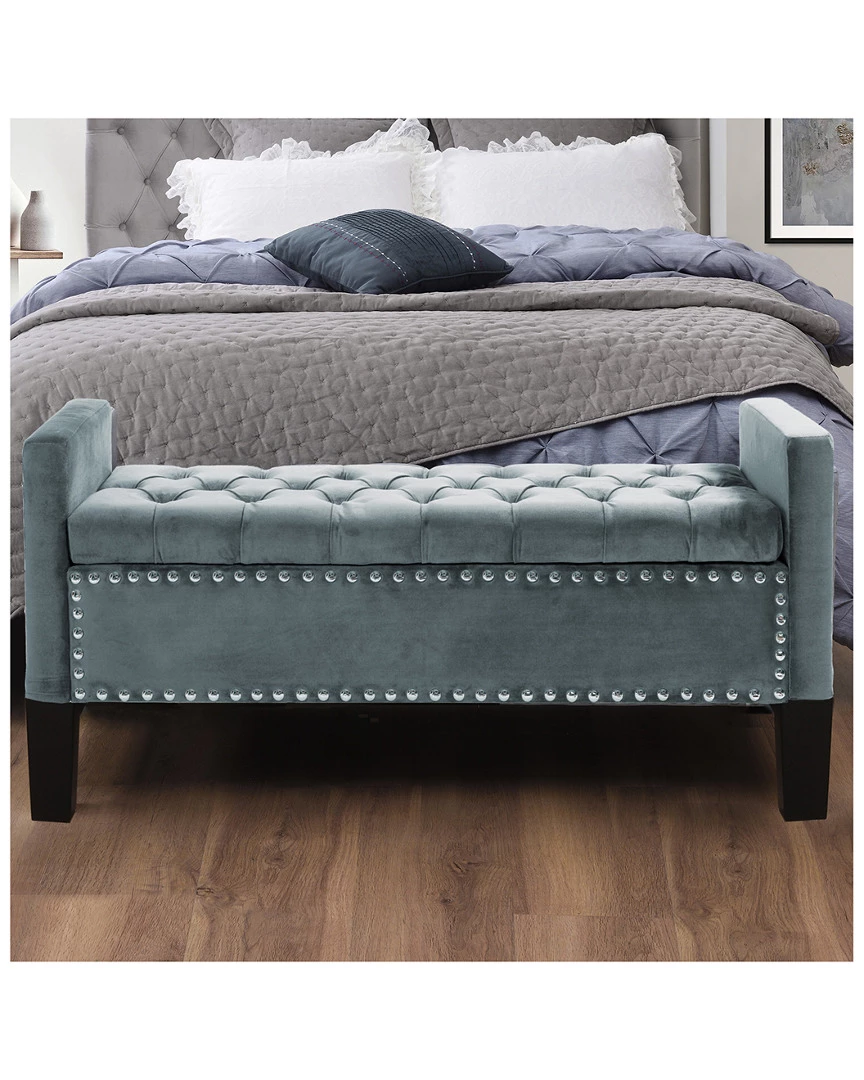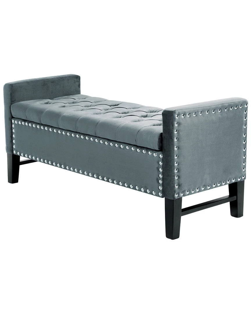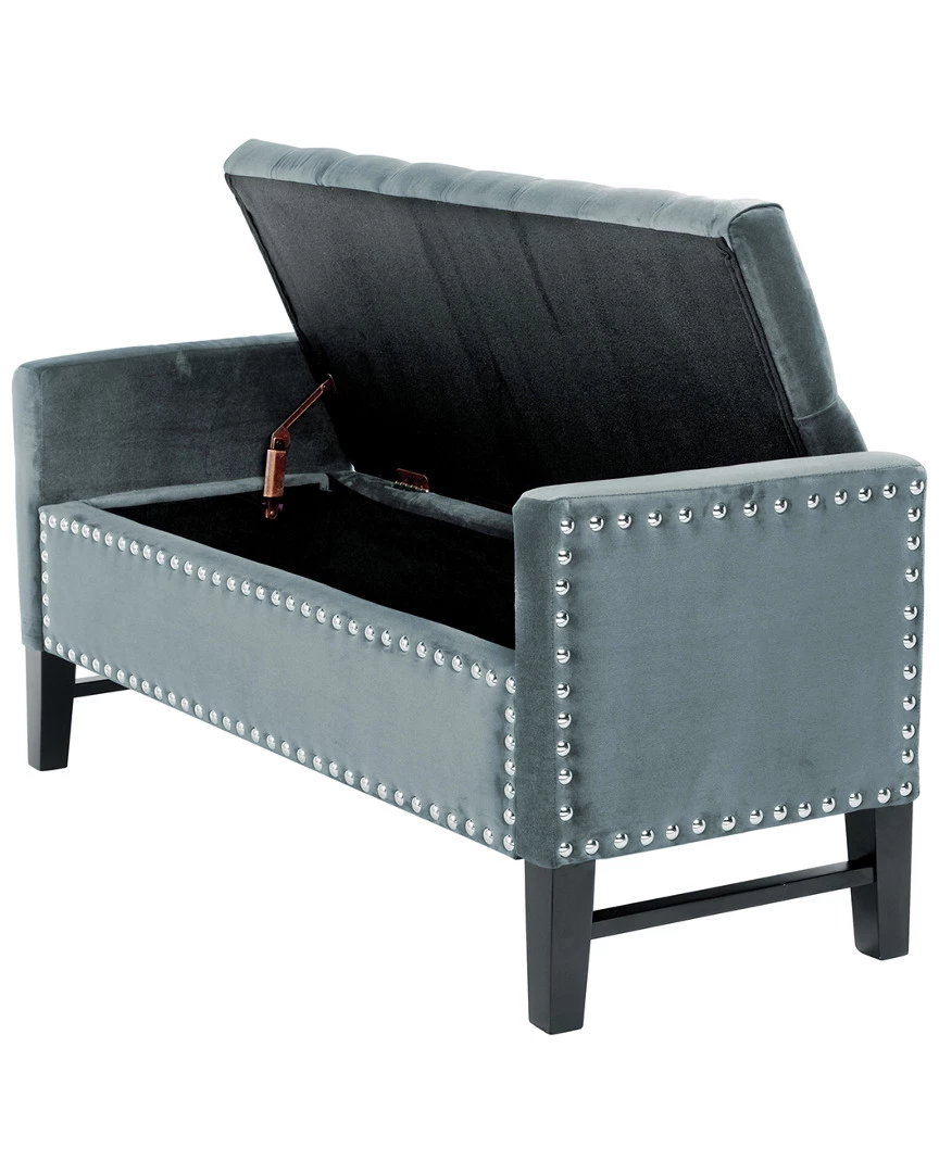 - Design details: Foam construction; velvet; silver decorative nail head trim; button tufted; high density foam seating; solid birch legs; hidden storage compartment; adjustable safety hinged storage lid
