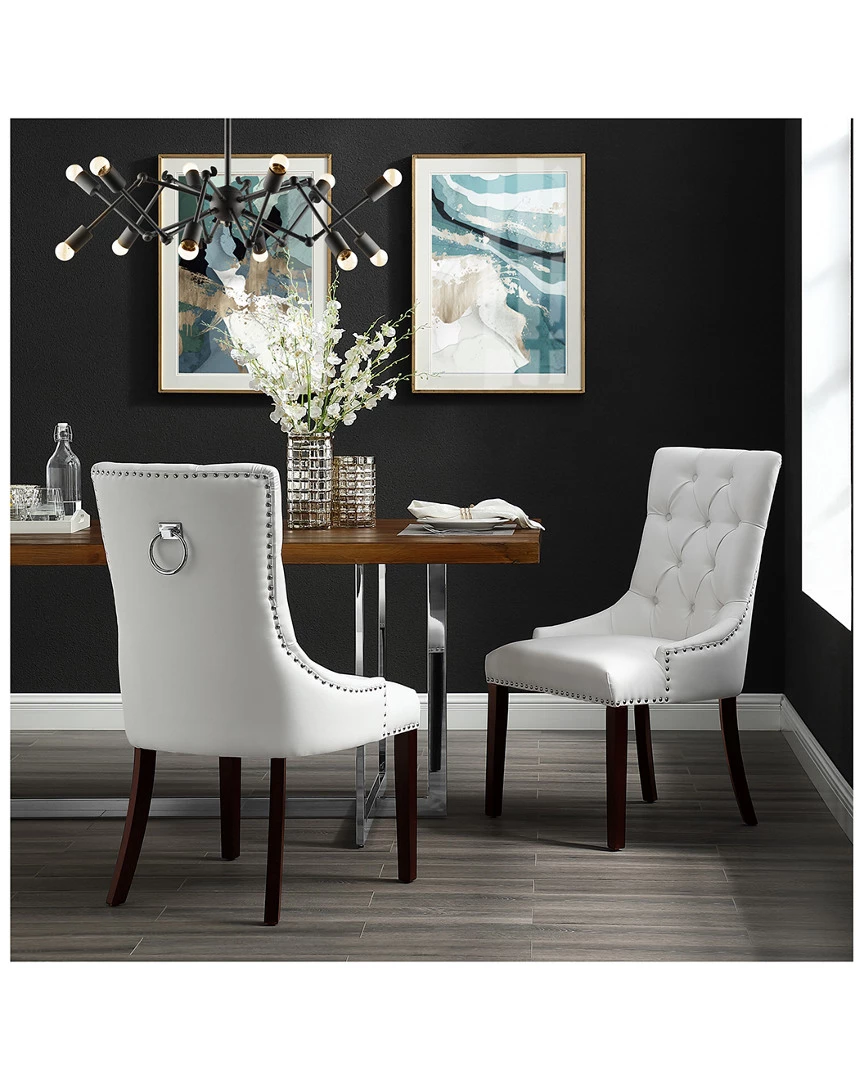 - Design details: Our trendy dining chairs in set of 2 add stylish intrigue to your dining room and kitchen area. These beautifully upholstered dining chairs create a warm, inviting seating option with a unique style that will add an aura of sophistication to your dining room with its alluring comfort and luxurious style.