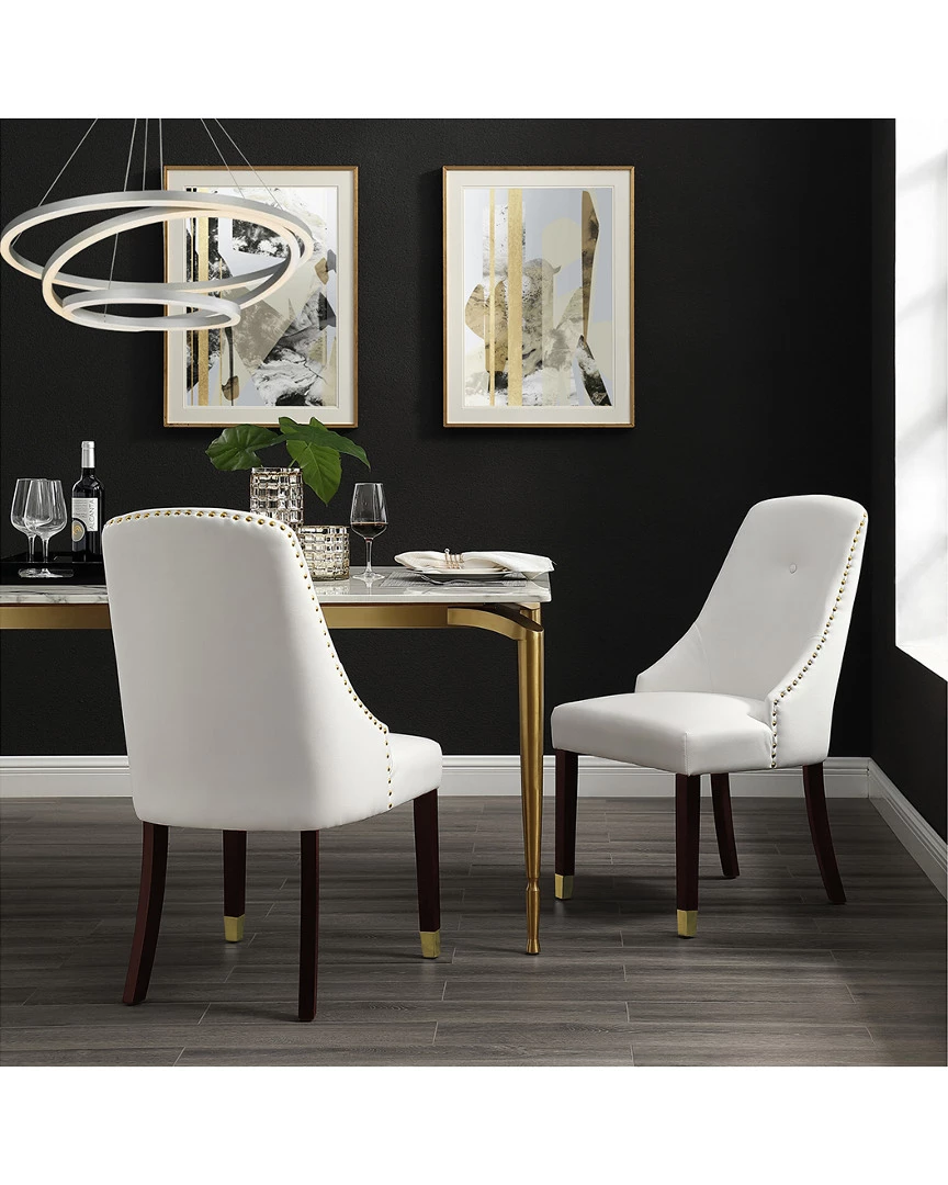 - Design details: Our trendy dining chairs in set of 2 add stylish intrigue to your dining room and kitchen area. These beautifully upholstered dining chairs create a warm, inviting seating option with a unique style that will add an aura of sophistication to your dining room with its alluring comfort and luxurious style.