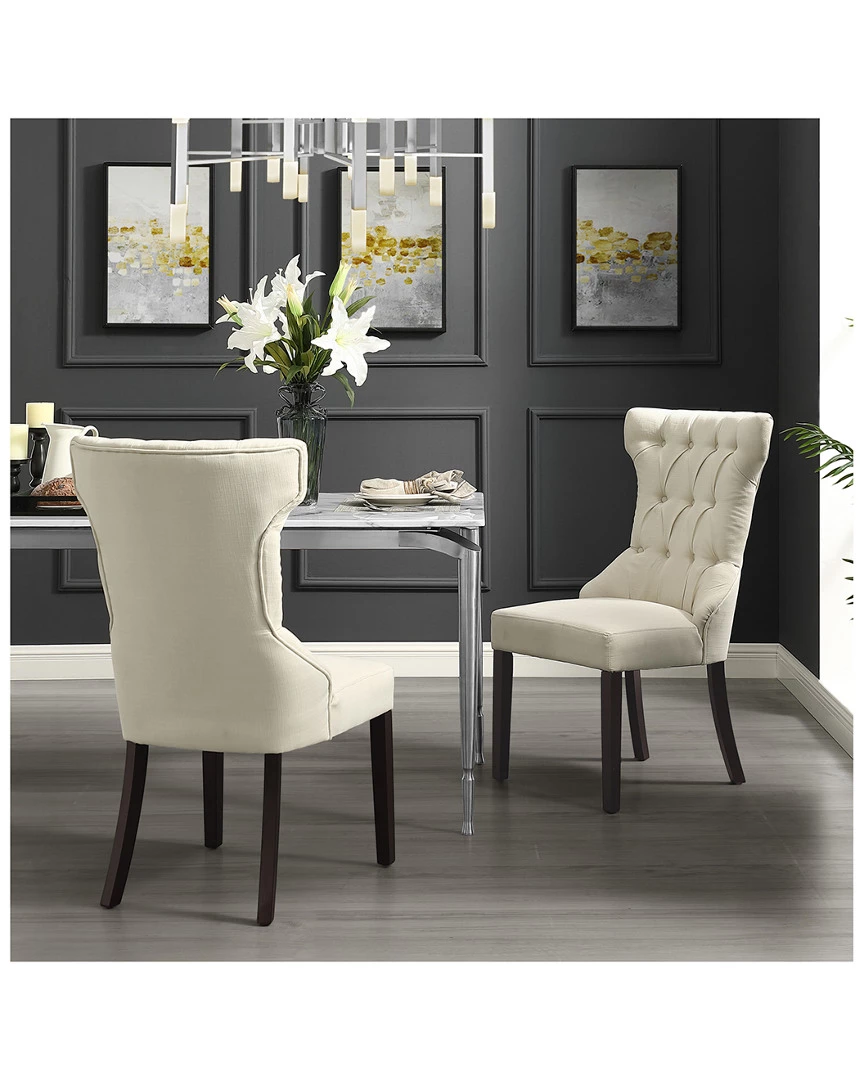 - Design details: Our trendy dining chairs in set of 2 add stylish intrigue to your dining room and kitchen area. These beautifully upholstered dining chairs create a warm, inviting seating option with a unique style that will add an aura of sophistication to your dining room with its alluring comfort and luxurious style.