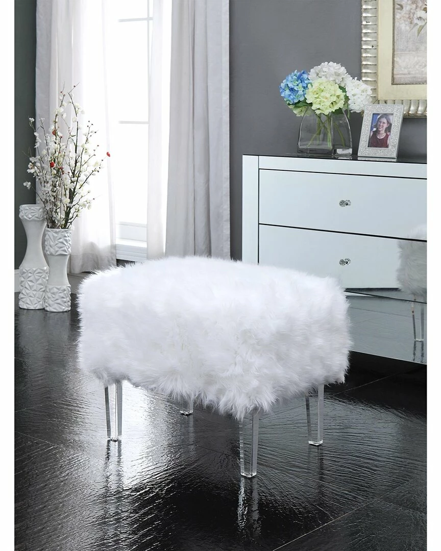 - Design details: Our faux fur ottoman adds a retro and groovy touch to your living room, bedroom or entryway. Featuring adorable shag fur, the comfort of a high density foam cushioned seat, this adorable pop of color accent piece can be mixed and matched, and provides not only dual functionality but also a focal point of style and flair that seamlessly incorporates your main decor to create an inviting and comfortable atmosphere to come home to. This ottoman is ideal for a kids to dorm rooms and everything in between.