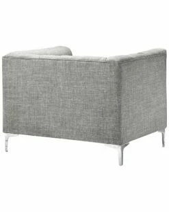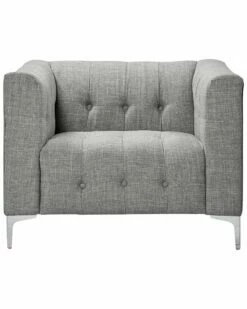 - Design details: Linen construction; button tufting; chrome Y-shaped legs