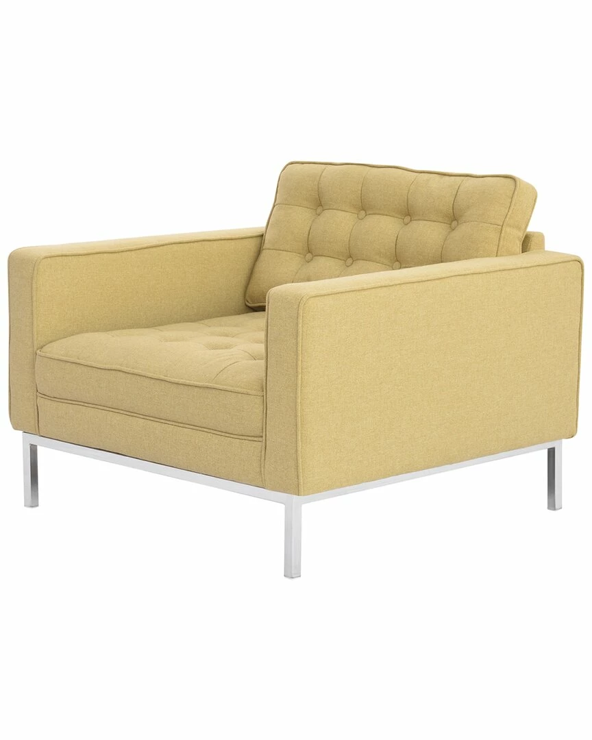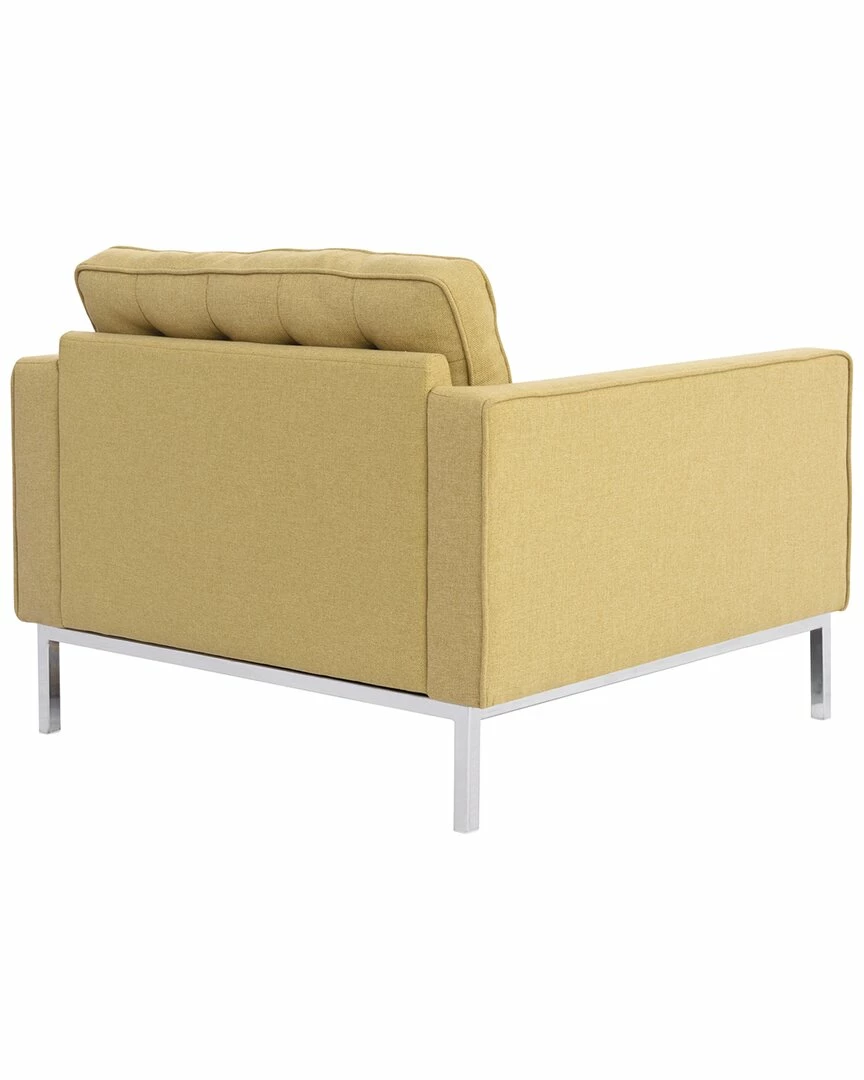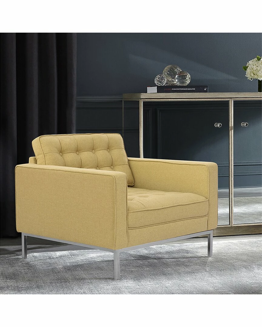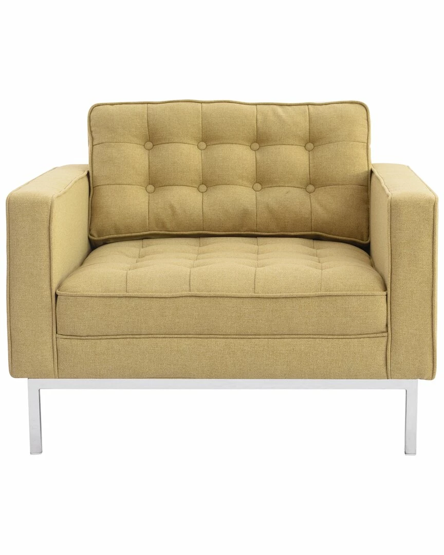 - Design details: Linen construction; button tufted; high density foam padding; silver-tone straight legs